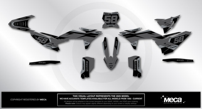 All MECA Graphics are printed and laminated with the sports BEST materials developed along-side Team Monster Energy Kawasaki in the USA. We use the NEW Air-Release Formula Material which allows air-bubbles to escape from under the graphic material, this makes application EASY! While still being super sticky! We find all of our customers that ride consistently will easily get one full season of riding out of each kit, if not more. MECA uses state-of-the-art equipment, our printers are the finest machines currently available in the printing industry. The clarity and colour we can reproduce with our printers is far beyond most of our competitors, this allows us to match colours with unrivalled precision.