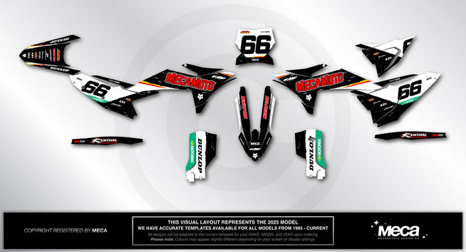 All MECA Graphics are printed and laminated with the sports BEST materials developed along-side Team Monster Energy Kawasaki in the USA. We use the NEW Air-Release Formula Material which allows air-bubbles to escape from under the graphic material, this makes application EASY! While still being super sticky! We find all of our customers that ride consistently will easily get one full season of riding out of each kit, if not more. MECA uses state-of-the-art equipment, our printers are the finest machines currently available in the printing industry. The clarity and colour we can reproduce with our printers is far beyond most of our competitors, this allows us to match colours with unrivalled precision.