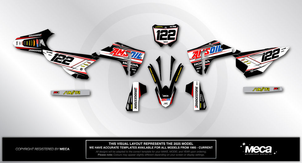 All MECA Graphics are printed and laminated with the sports BEST materials developed along-side Team Monster Energy Kawasaki in the USA. We use the NEW Air-Release Formula Material which allows air-bubbles to escape from under the graphic material, this makes application EASY! While still being super sticky! We find all of our customers that ride consistently will easily get one full season of riding out of each kit, if not more. MECA uses state-of-the-art equipment, our printers are the finest machines currently available in the printing industry. The clarity and colour we can reproduce with our printers is far beyond most of our competitors, this allows us to match colours with unrivalled precision.