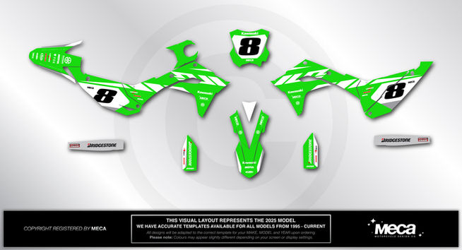All MECA Graphics are printed and laminated with the sports BEST materials developed along-side Team Monster Energy Kawasaki in the USA. We use the NEW Air-Release Formula Material which allows air-bubbles to escape from under the graphic material, this makes application EASY! While still being super sticky! We find all of our customers that ride consistently will easily get one full season of riding out of each kit, if not more. MECA uses state-of-the-art equipment, our printers are the finest machines currently available in the printing industry. The clarity and colour we can reproduce with our printers is far beyond most of our competitors, this allows us to match colours with unrivalled precision.
