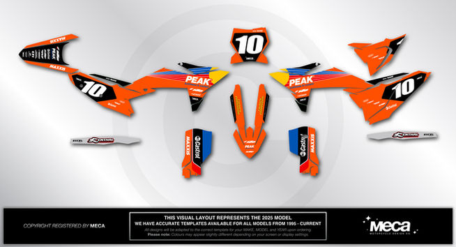 All MECA Graphics are printed and laminated with the sports BEST materials developed along-side Team Monster Energy Kawasaki in the USA. We use the NEW Air-Release Formula Material which allows air-bubbles to escape from under the graphic material, this makes application EASY! While still being super sticky! We find all of our customers that ride consistently will easily get one full season of riding out of each kit, if not more. MECA uses state-of-the-art equipment, our printers are the finest machines currently available in the printing industry. The clarity and colour we can reproduce with our printers is far beyond most of our competitors, this allows us to match colours with unrivalled precision.